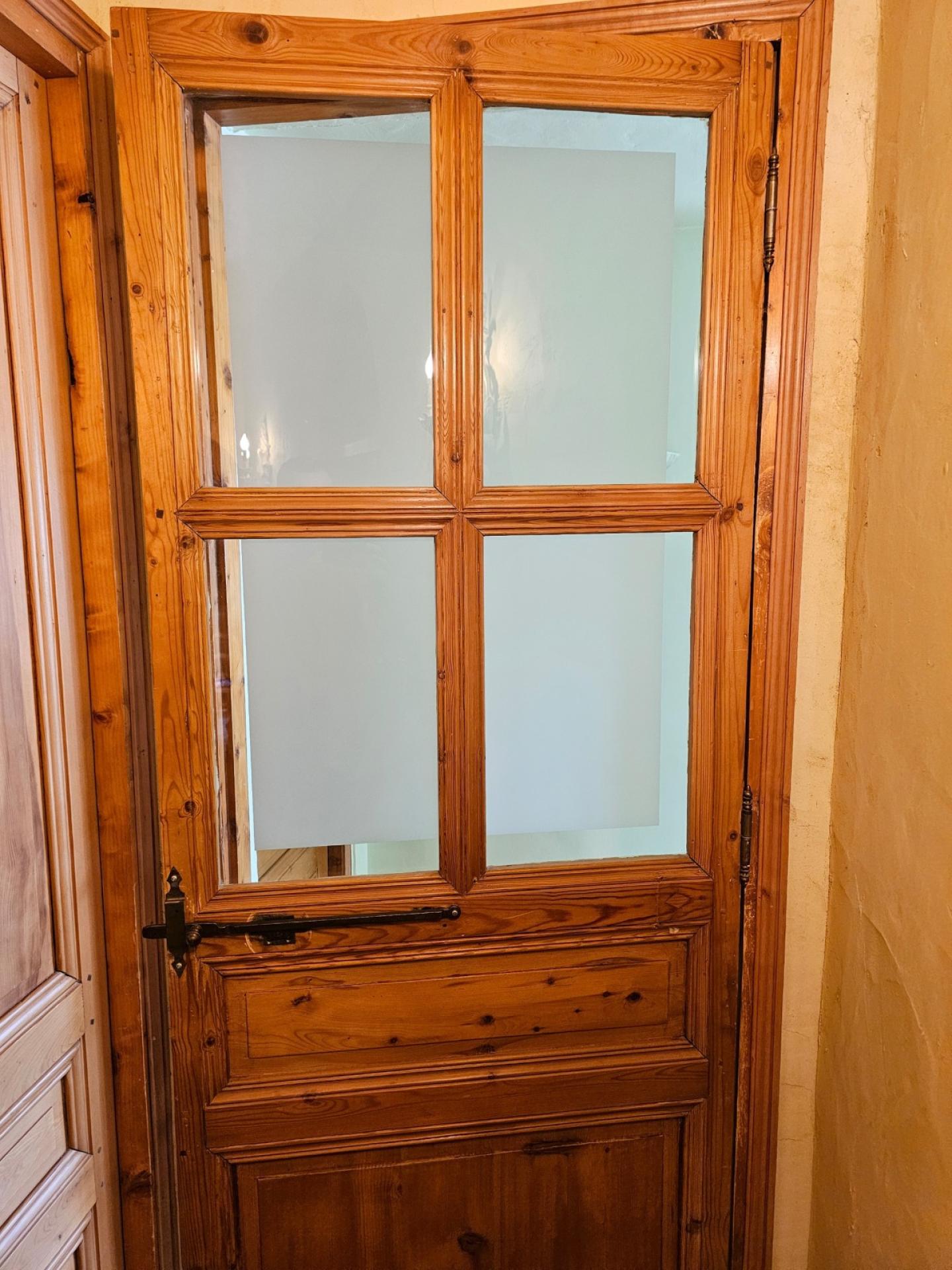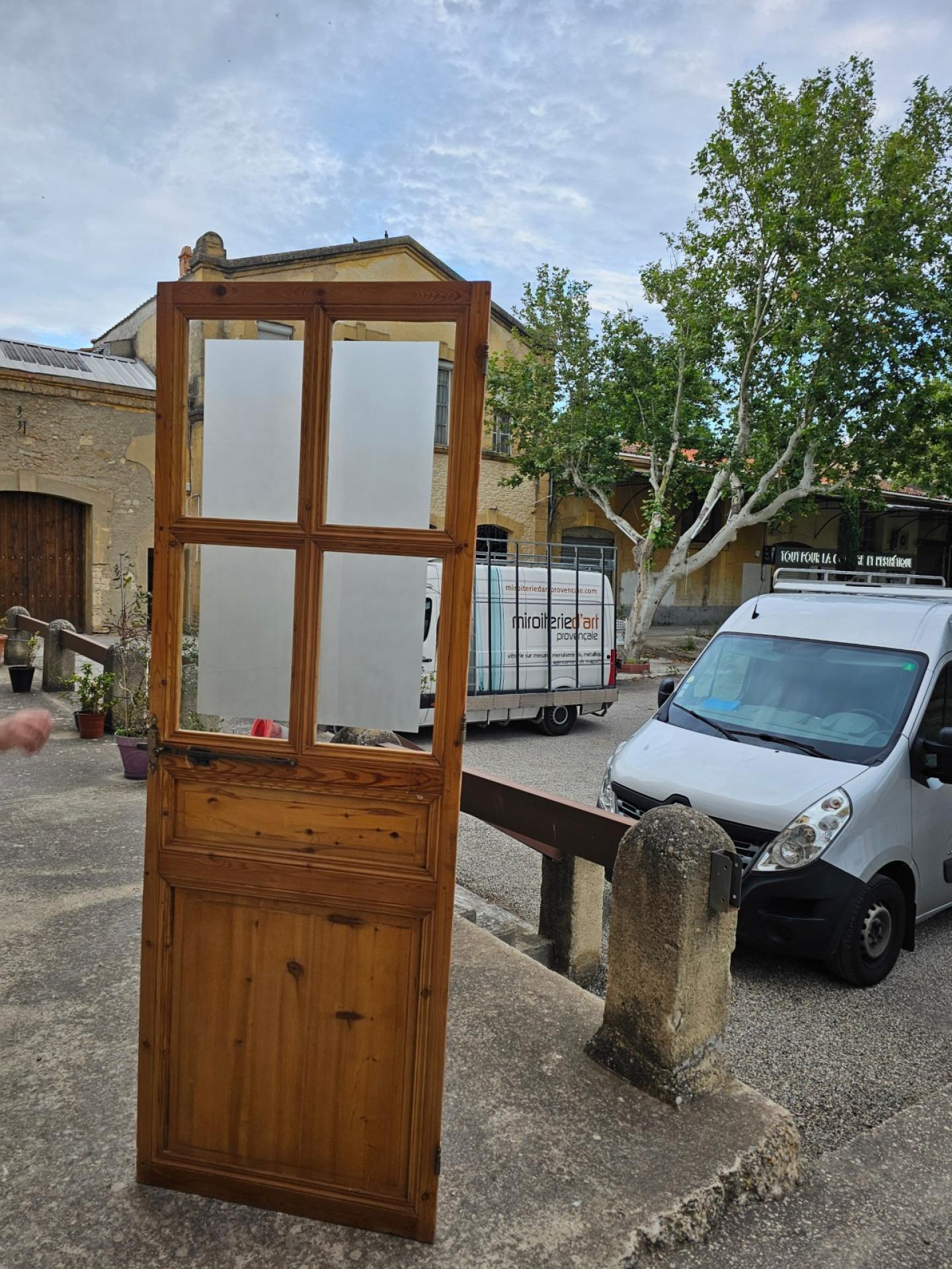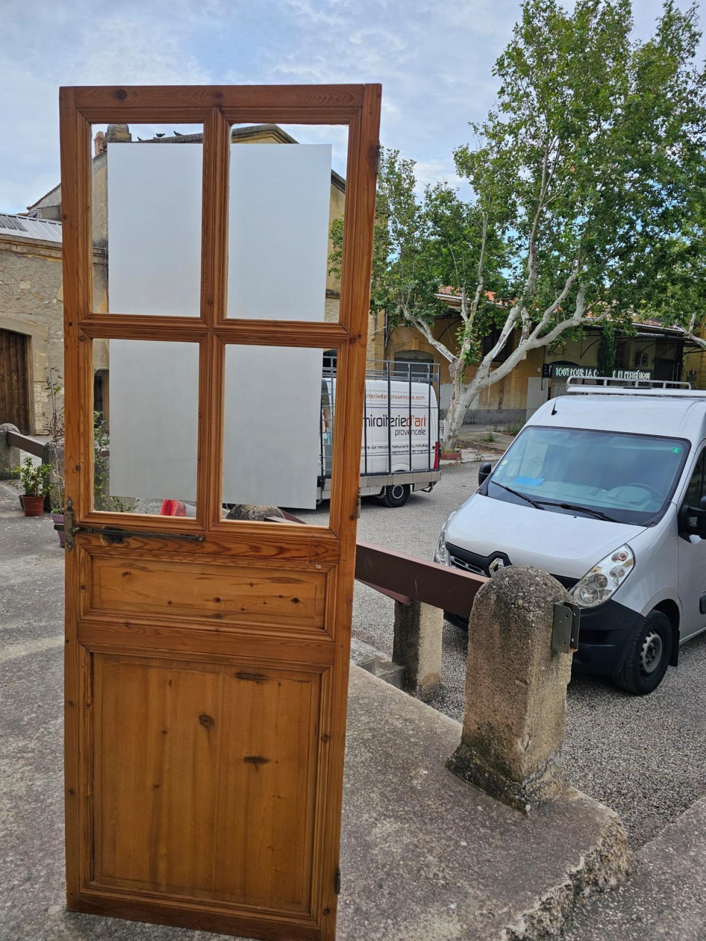 Grâce à des techniques différentes et une sableuse automatique, dans ces ateliers de Salon-de-Provence la Miroiterie d'art provençale et capable de rénover des portes anciennes en bois avec un sablage décoratif à la demande du client en l'occurrence ici sur Eygalières .