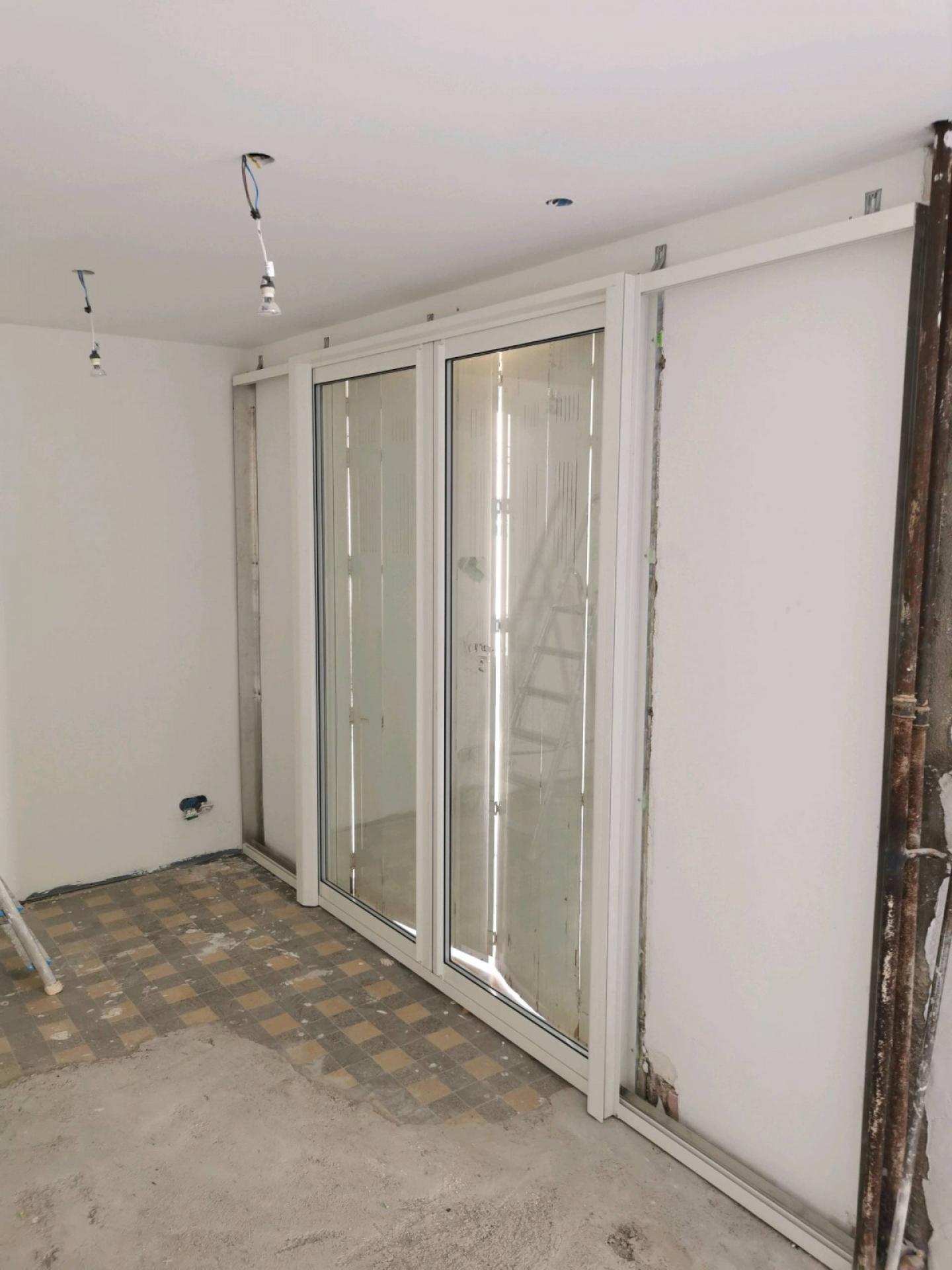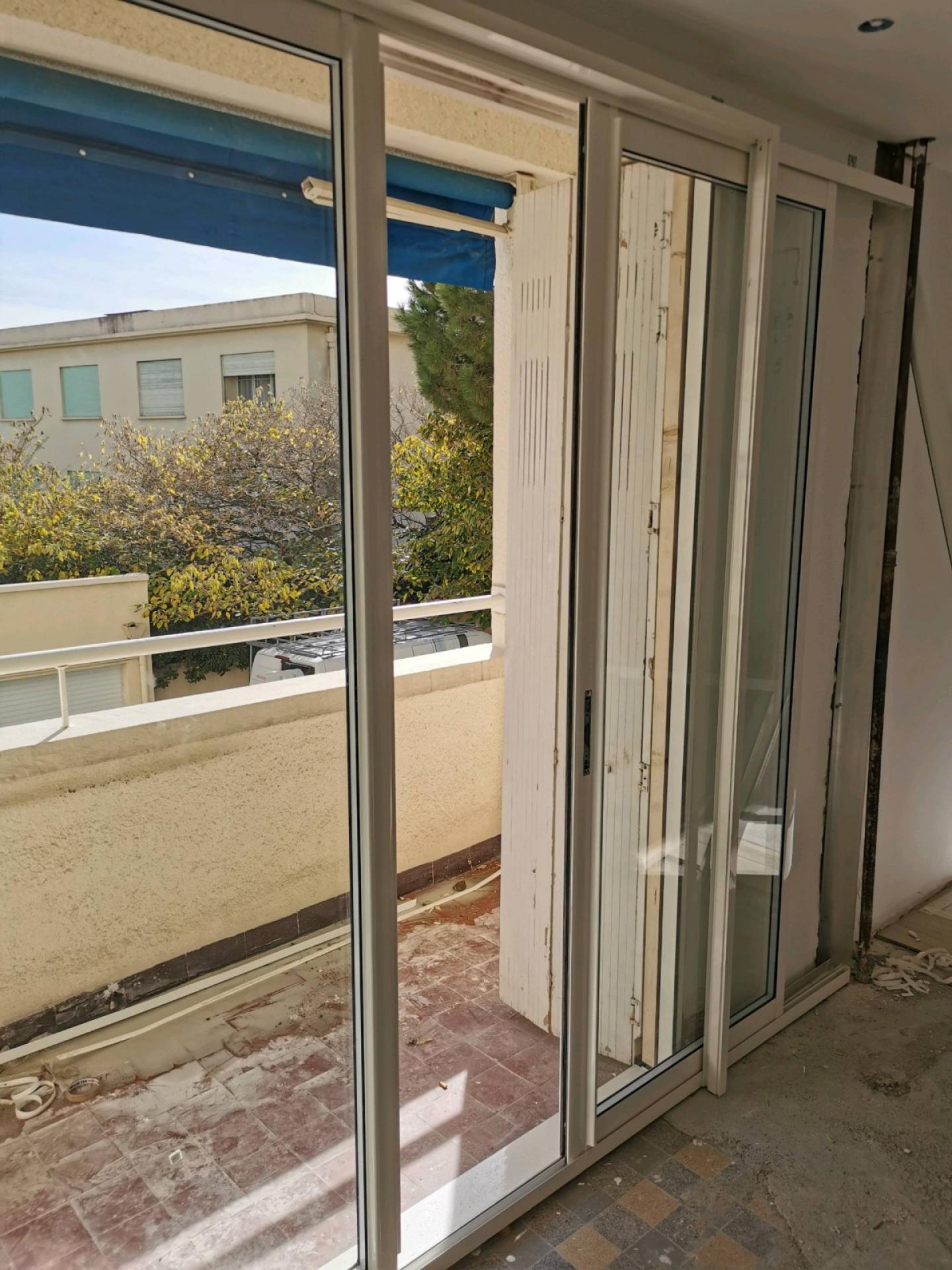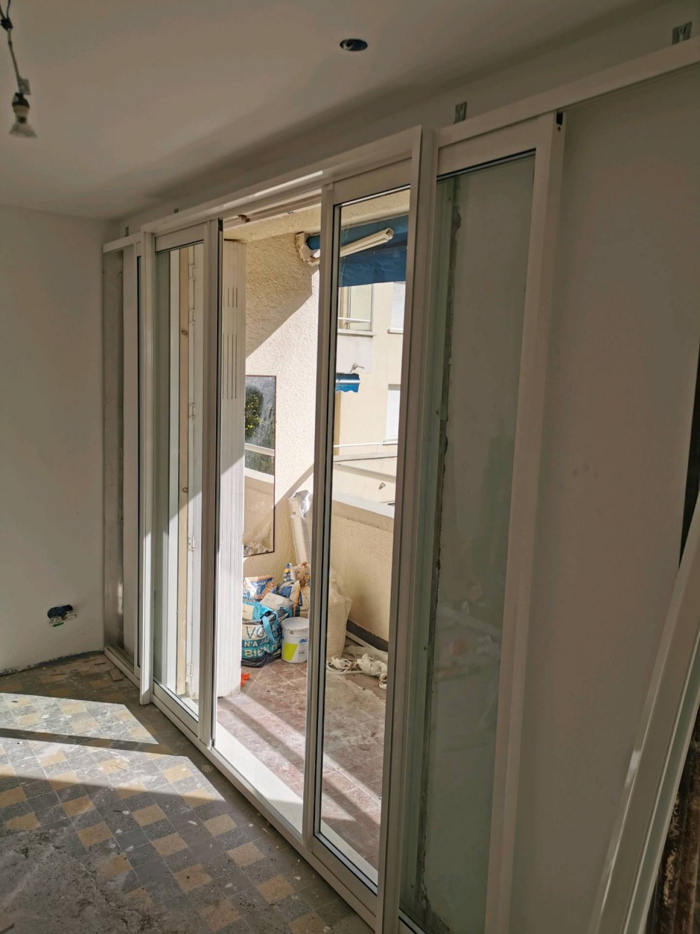 Sur la Corniche à Marseille dans les Bouches-du-Rhône pour un appartement de standing l'architecte a demandé à la Miroiterie d'art Provençale de réaliser une menuiserie coulissante à galandage pour un gain de place avec vitrage isolant argon.