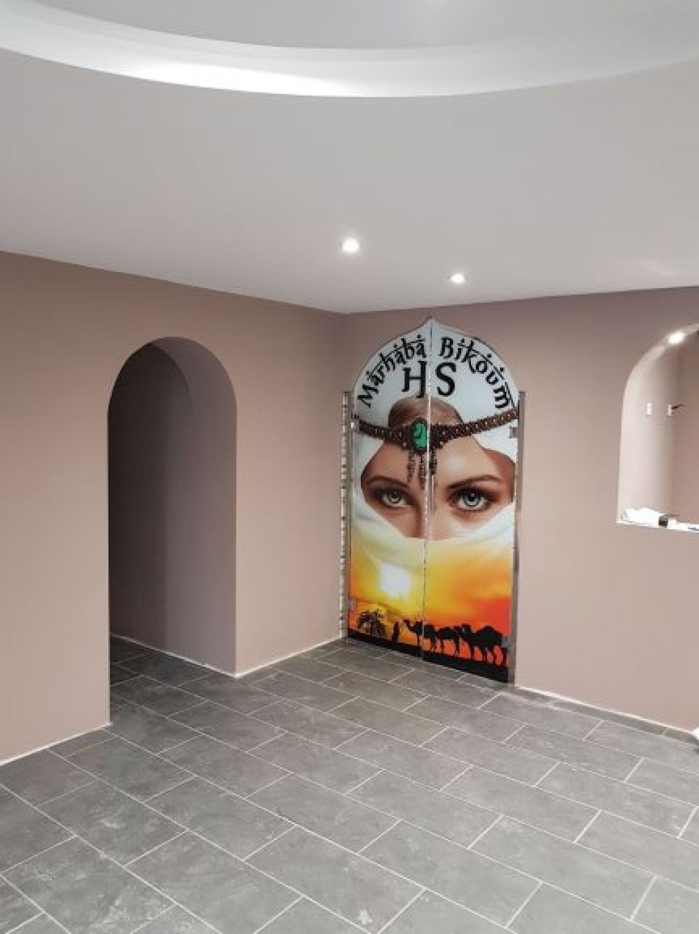 La Miroiterie d'At Provençale a réalise la photo numérique sur 2 portes en verre trempé pour un hammam à Marseille St Louis, nous réalisons du sur mesure à partir de votre photo, nous vous proposons de vous rencontrer afin d'établir un devis sur décor de votre choix.