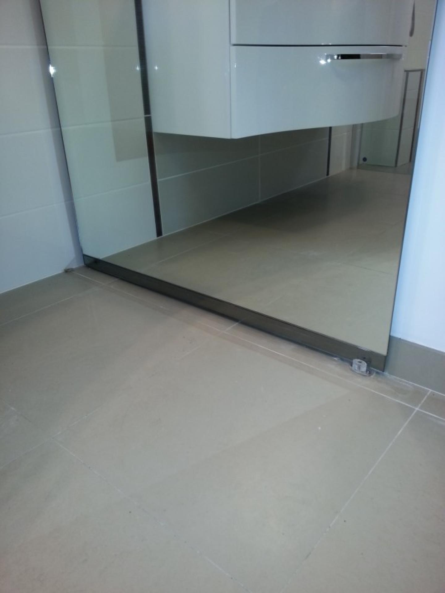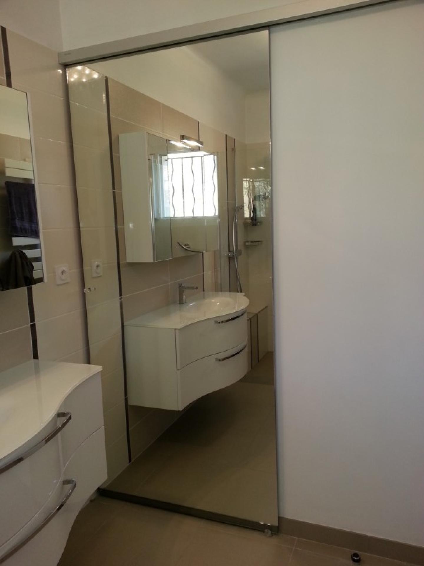 A la demande du client nous avons réalisé une porte coulissante sur mesure en miroir avec système SLICE .