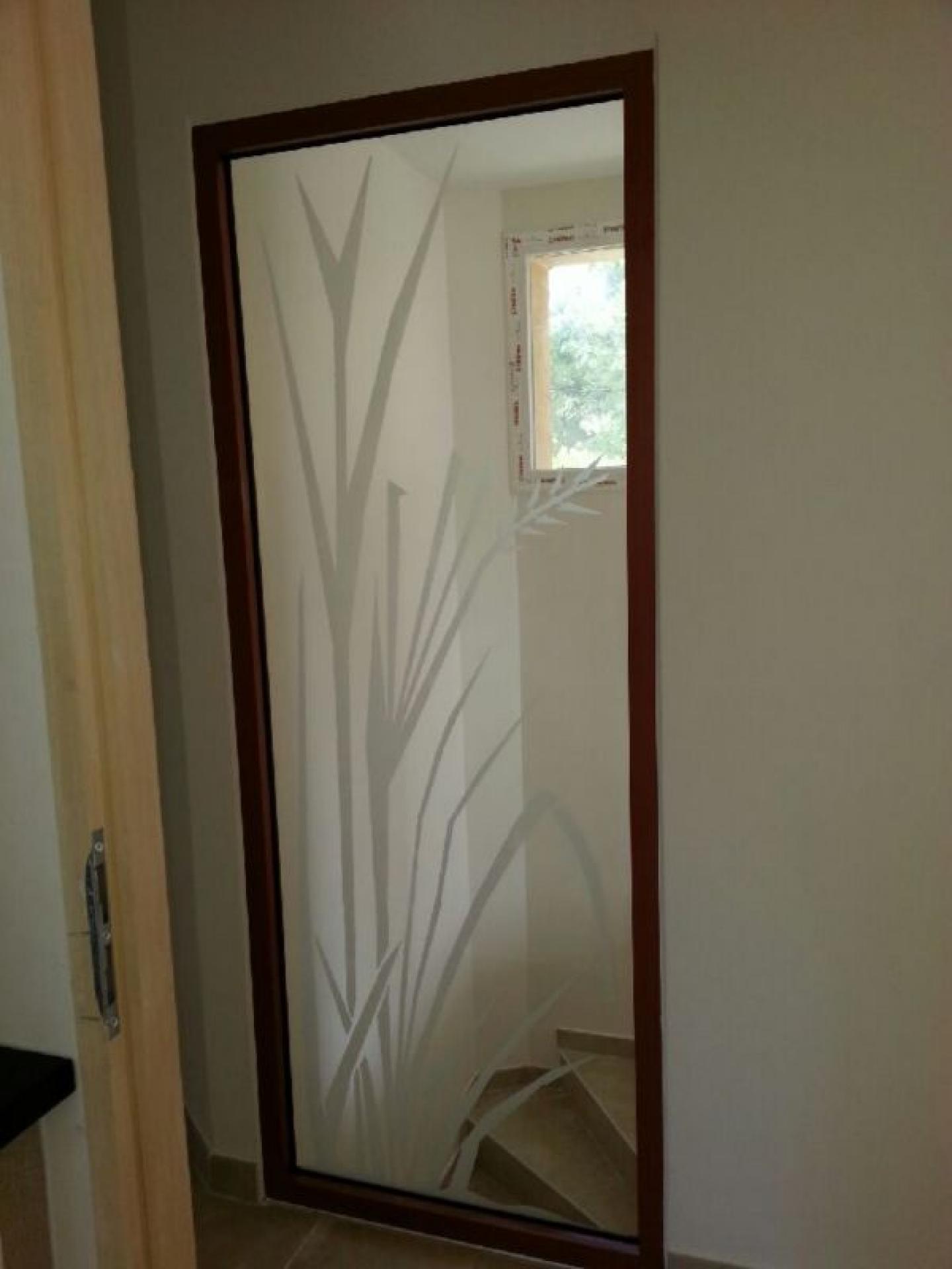 La Miroiterie D'Art Provençale à réalisé un roseau décoratif avec la technique du jet de sable sur pochoir .