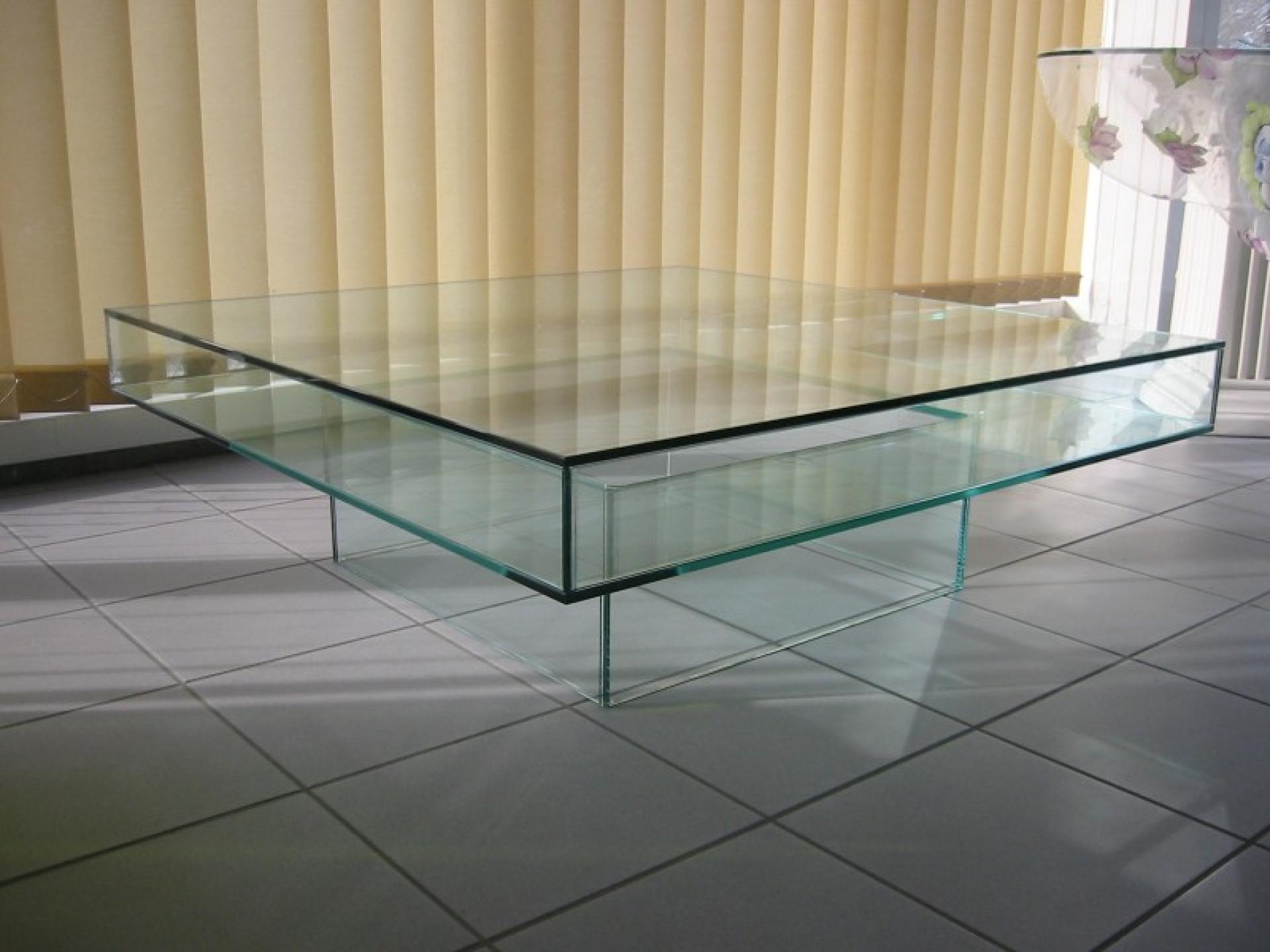 La miroiterie d'art provençale à Salon de Provence à réalisée une table décorative avec plateau de verre 15 mm coquillé et support de verre contourné .