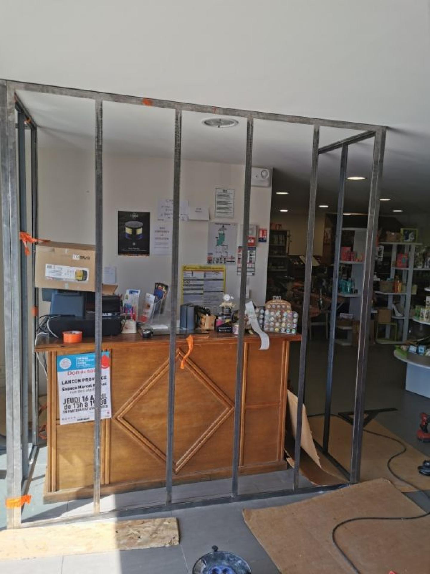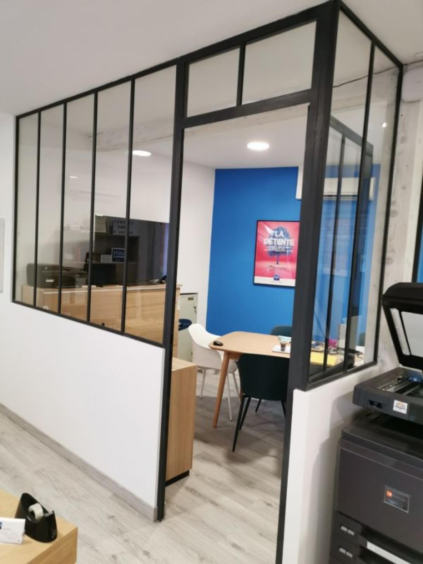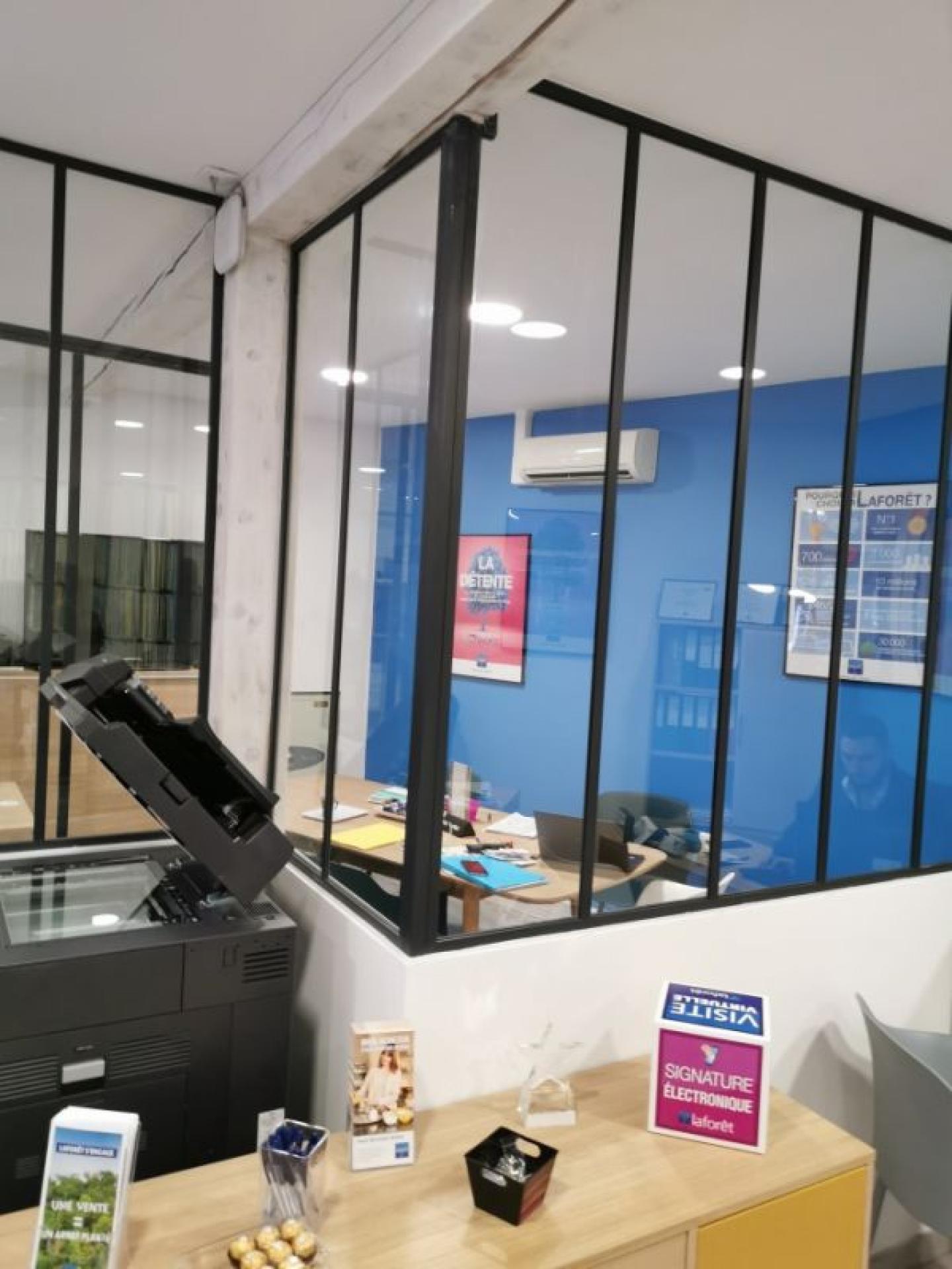 La Miroiterie D'Art Provençale à Salon De Provence dans les Bouches Du Rhône à réalisé pour la Cave Coopérative De Lançon De Provence un confinement pour son bureau d'accueil et pour un bureau de l'agence LAFORET dans le centre ville de Salon de Provence